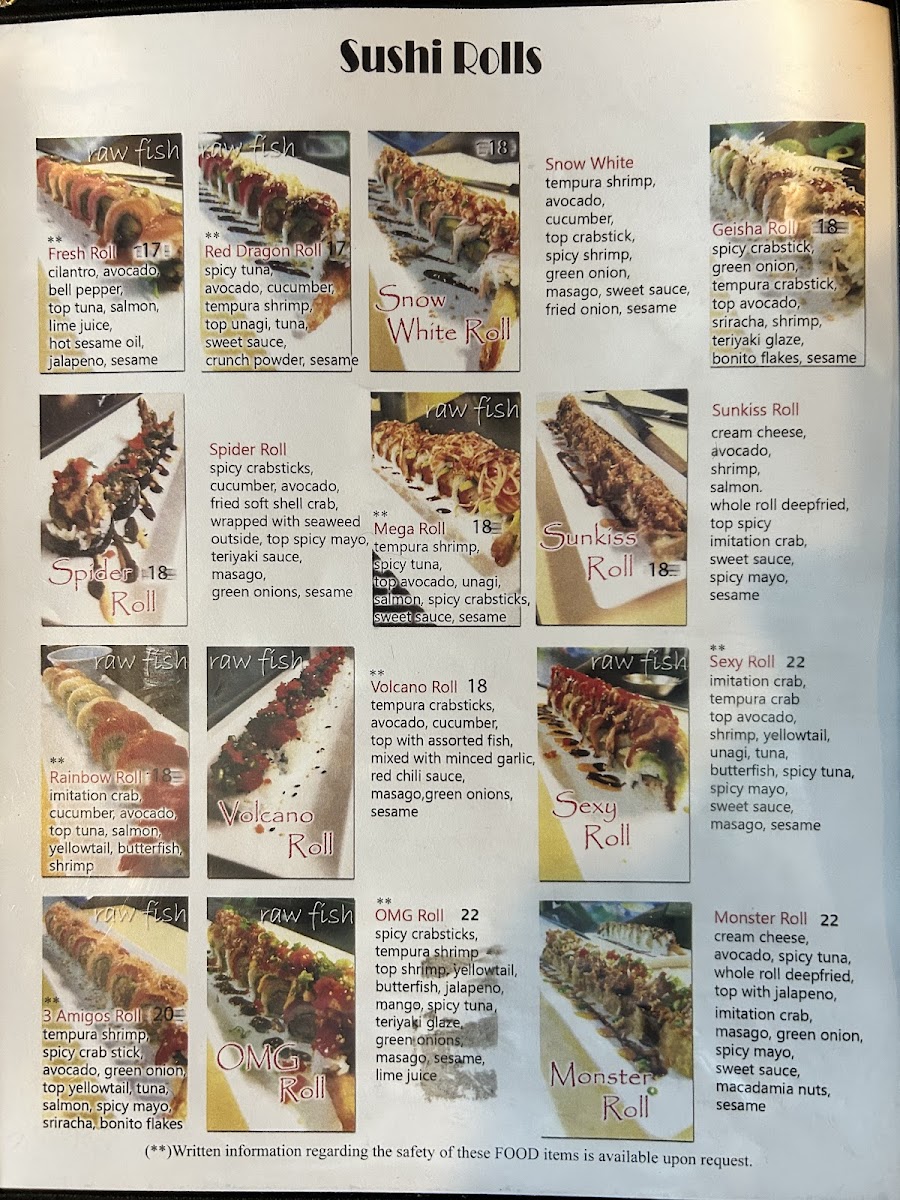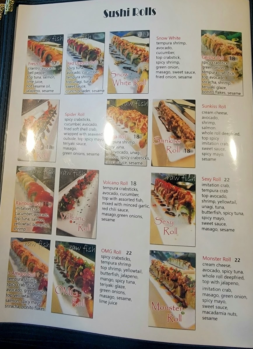 Had the monster sushi roll. Probably the best sushi roll I've ever had! It's deep fried too Their vegetable tempura was great too. The batter was very light & extra crispy.